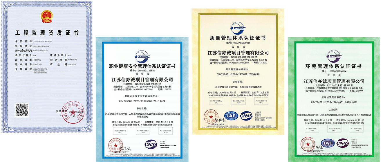 江蘇信亦誠項目管理有限公司前身為鎮江信誠建設監理有限公司,成立于1994年6月,是國家實行建設工程監理制度成立試點單位,是鎮江市成立較早的建設監理工程監理企業之一。公司具有房屋建筑工程監理資質甲級,市政公用工程監理資質乙級,電力工程監理乙級,化工石油工程監理資質乙級。人防工程監理資質,造價咨詢資質,提供招標代理服務;公司注冊資金1000萬元。自公司成立以來,開展工業與民用建筑、公路、污水截流.輸變電線路監理業務,完成各類住宅工程監理3000多萬平方米;完成各類工業用房監理工程600多萬平方米;完成學校、賓館、酒店、商場、辦公等公建項目300多個。有多項工程獲省市優秀獎項,并多次獲鎮江市人民政府表彰。